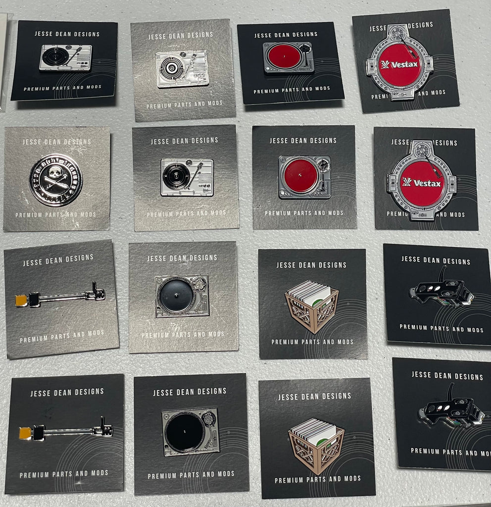 JDD ENAMEL PINS VERSIONS JDD SOCAL LOGO PTA TONE ARM VESTAX HANDY TRAX VESTAX PDX2000 RECORD CRATE HEADSHELL M44-7 TECH 1200